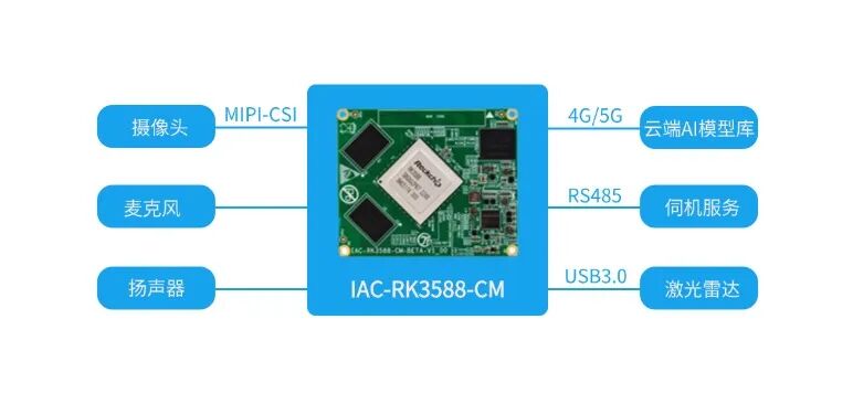 基于移动AI数字人的主控需求,可选择启扬RK3588核心板作为设备的控制核心,RK3588核心板集成八核高性能处理器,6T算力NPU,提供强有力的AI算法支撑,满足高度仿真的数字人模拟显示与智能交互的需求;板载丰富的接口,可接入激光雷达、深度相机、摄像头、麦克风等,实现自动避障、路径规划和感知功能。