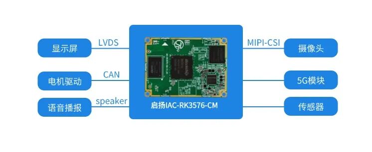 支持MIPI_DSI、eDP、HDMI多种显示接口,可用于连接高亮大屏,显示简单的状态图标(电量、速度);可外接5G模块、WiFi模块,突发状况时,可将报警信息及时发送至联系人手机上;板载MIPI-CSI、CAN、USB、RS485、I2C等接口,可用于摄像头、电机驱动、传感器等设备的连接。